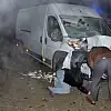 Konya'nın Akşehir ilçesinde lastiği patlayan minibüse, başka bir minibüs çarptı. Minibüslerin şarampole uçtuğu kazada 2 kişi yaralandı.