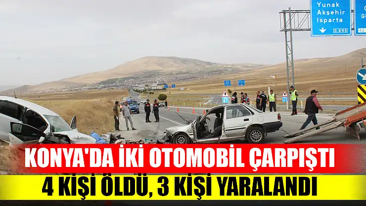 Konya'nın Yunak ilçesinde iki otomobilin çarpışması sonucu, 4 kişi öldü, 3 kişi yaralandı.