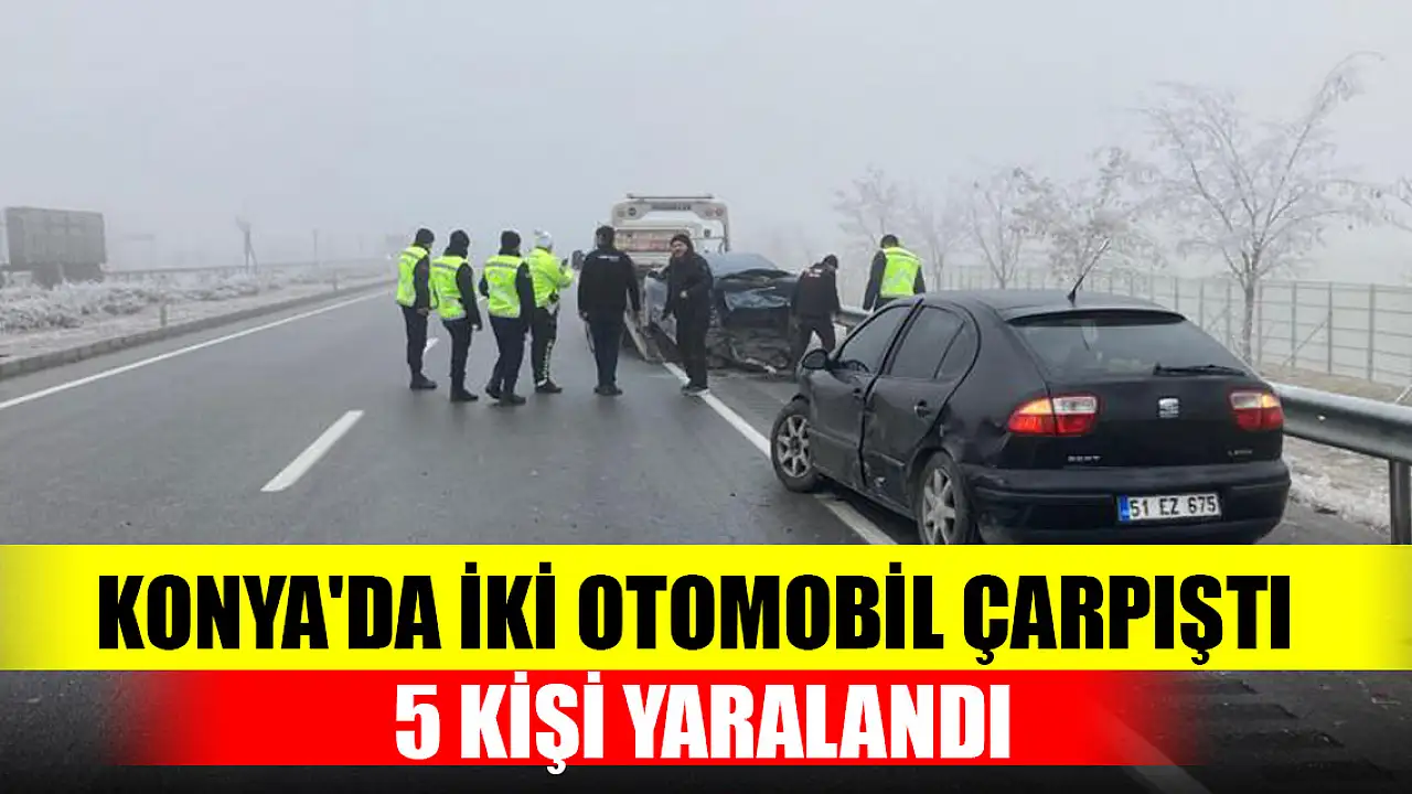 Konya'da iki otomobilin çarpışması sonucu 5 kişi yaralandı.