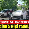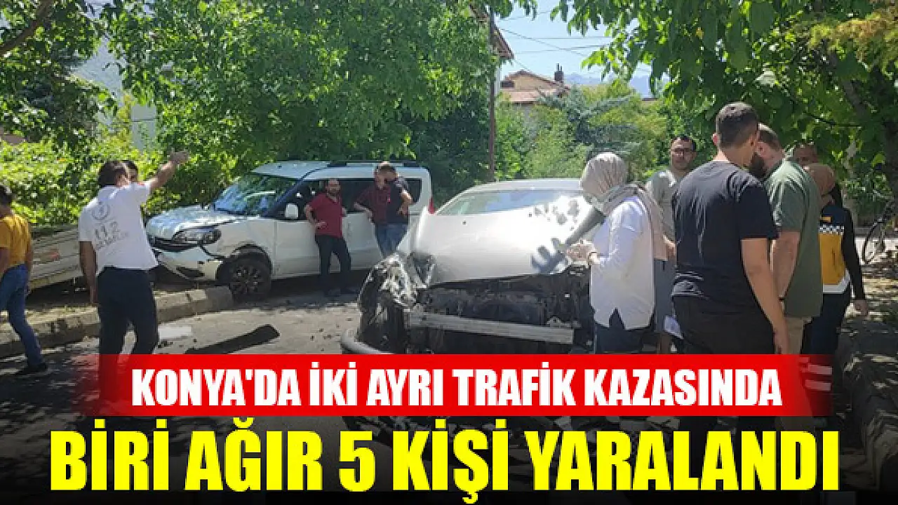 Konya'da meydana gelen iki trafik kazasında, biri ağır 5 kişi yaralandı. Durumu ağır olan şahıs Konya Şehir Hastanesine sevk edildi.