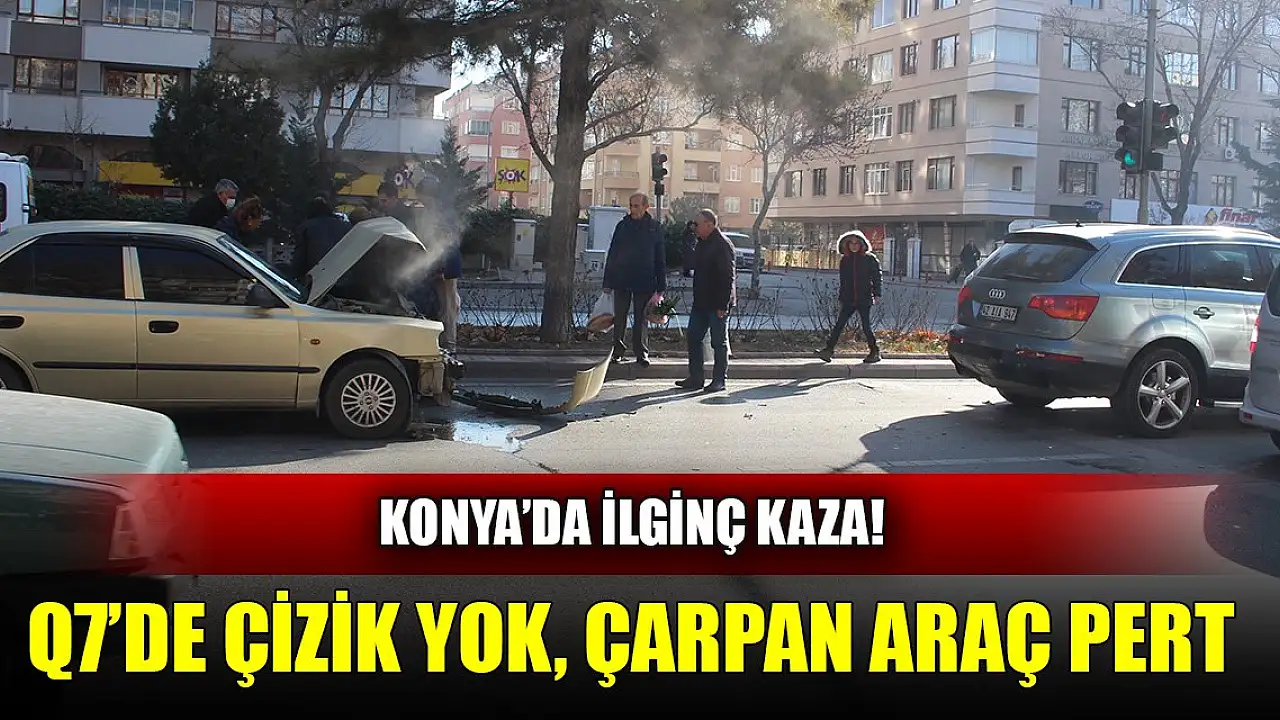 Konya'da ilginç kaza! Q7'de çizik yok, çarpan araç pert