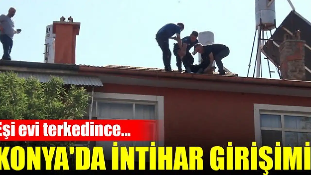 Konya'da eşinin evden ayrılması sebebiyle bunalıma giren şahıs, 3 katlı evinin çatısına çıkarak intihara teşebbüs etti. Şahıs, çatıda fenalaşması sonucu polis ekiplerince aşağıya indirildi.