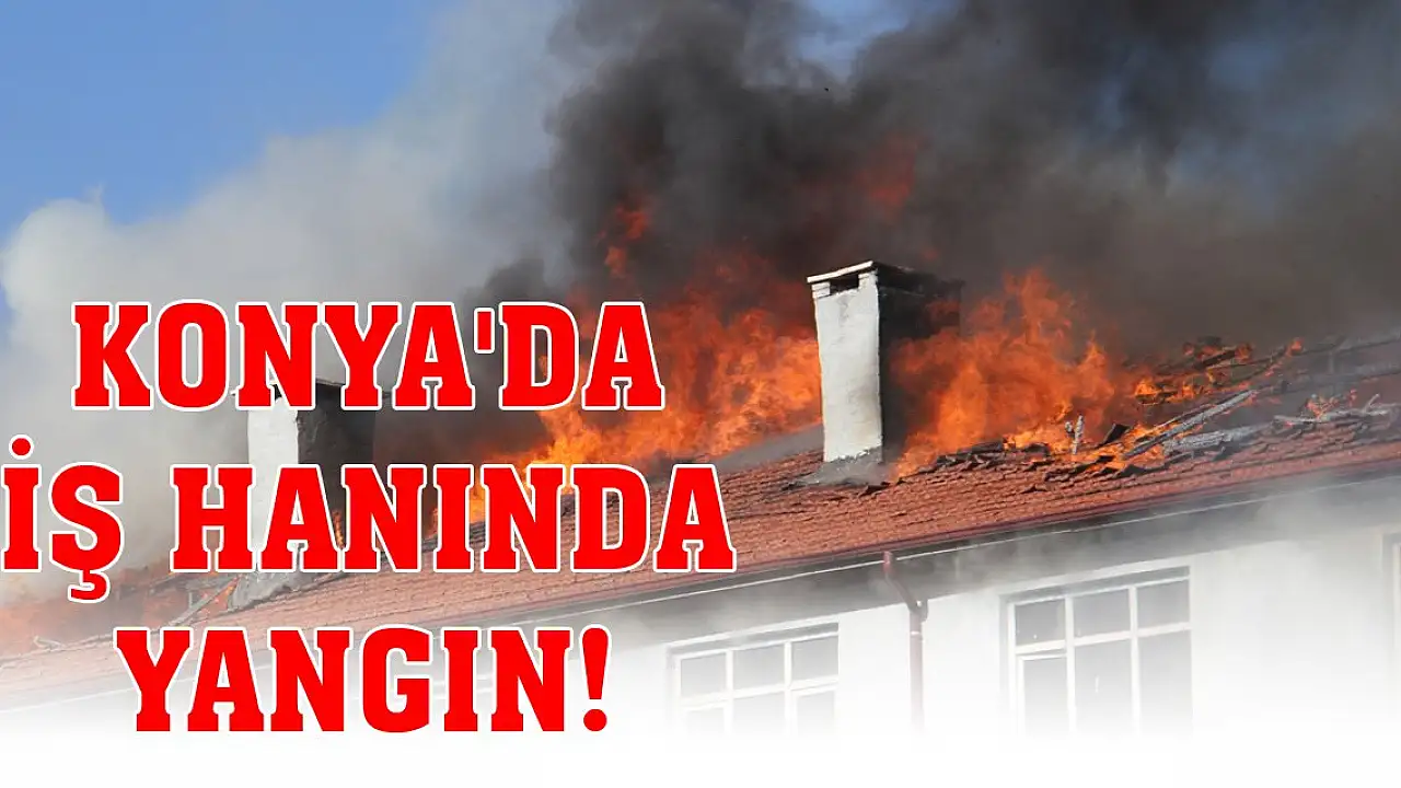 Konya'da eski belediye iş hanının çatısında çıkan yangın çıktı.