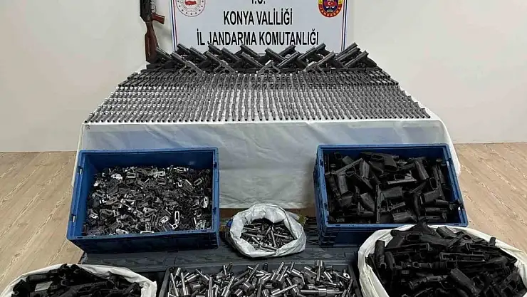 Konya'nın Beyşehir ilçesinde jandarma ekipleri tarafından bir iş yerinde yapılan aramada çok sayıda tabanca malzemesi ve 1 adet av tüfeği ele geçildi.
