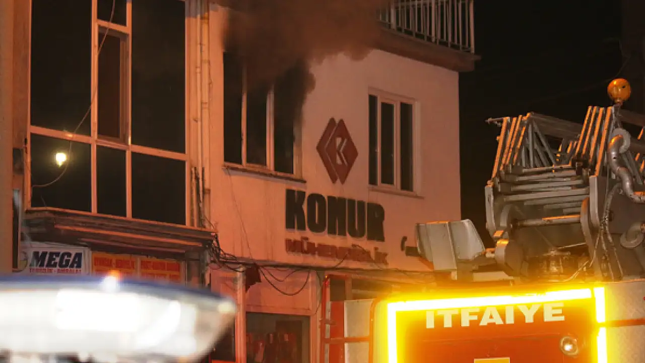 Alaylar 1 Mahallesi Ordinaryüs Profesör Sadi Irmak Caddesi'ndeki apartmanın ikinci katında bulunan bir iş yerinden dumanların çıktığını gören vatandaşlar, durumu itfaiye ekiplerine bildirdi.