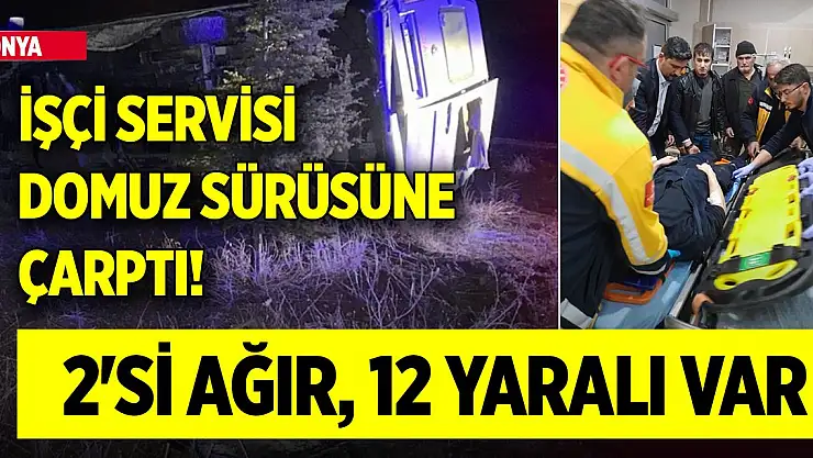 Konya'da işçi servisi domuz sürüsüne çarptı! 2'si ağır, 12 kişi yaralandı