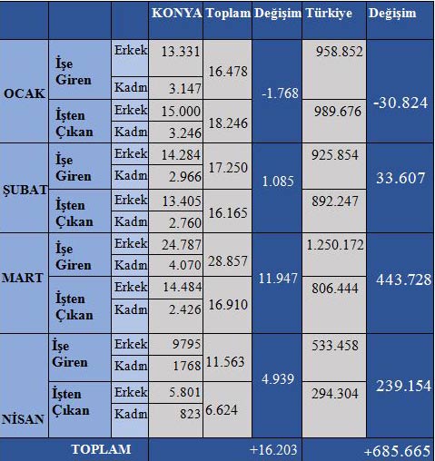 İŞTE KONYA'DA 2017 YILI İŞE GİREN-İŞTEN ÇIKAN KİŞİ İSTATİSTİKLERİ KAYNAK: YENİ HABER