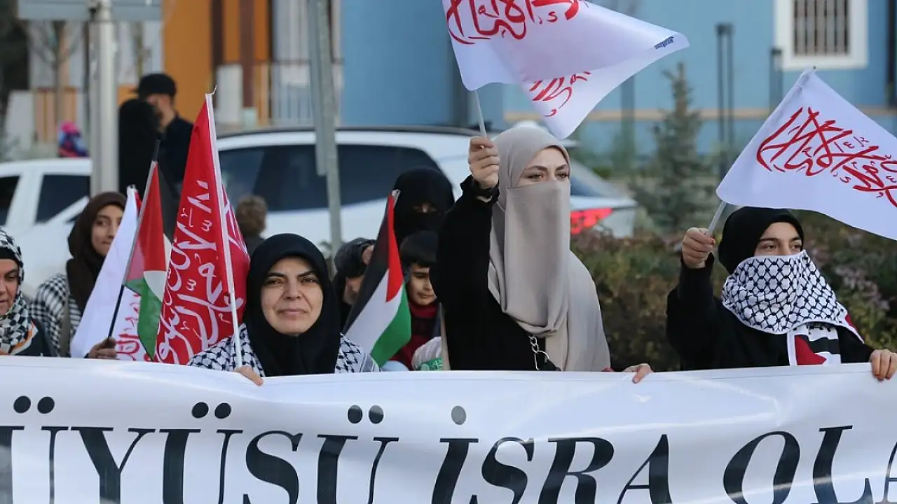 Konya'da, Filistinlilere destek ve İsrail'in saldırılarını kınamak için yürüyüş düzenlendi.