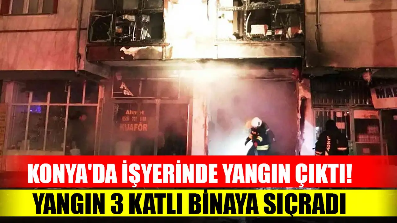 Konya'da bir iş yerinde yangın çıktı. Yangın itfaiye ekipleri tarafından söndürülürken, alevler üst kattaki dairenin balkonuna da zarar verdi.