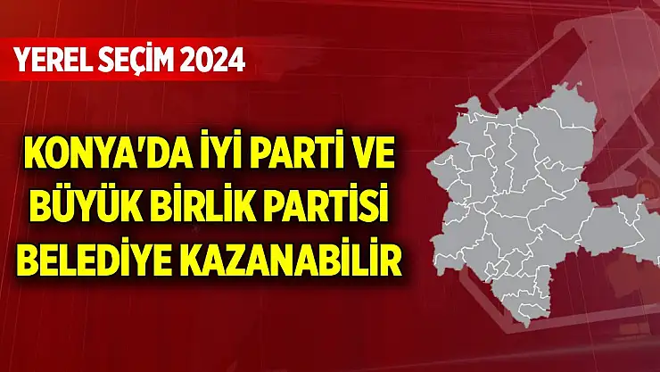 Konya'nn Ahırlı ilçesinde İyi Parti ve Halkapınar ilçesinde Büyük Birlik Partisi belediye kazanabilir.