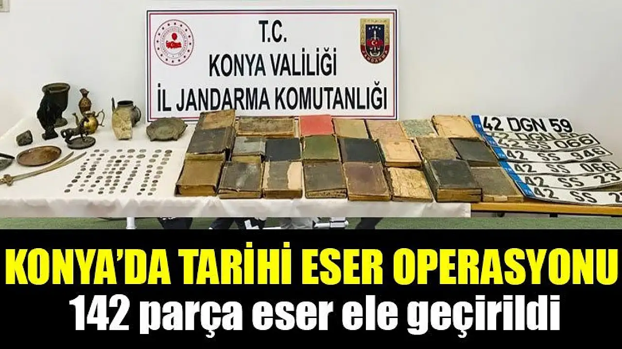 Konya'da jandarma ekiplerinin yaptığı operasyonla 142 parça tarihi eser ele geçirildi.