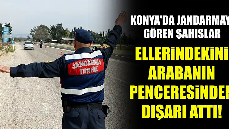 Konya'da jandarmayı gören şahıslar ellerindekini arabanın penceresinden dışarı attı!