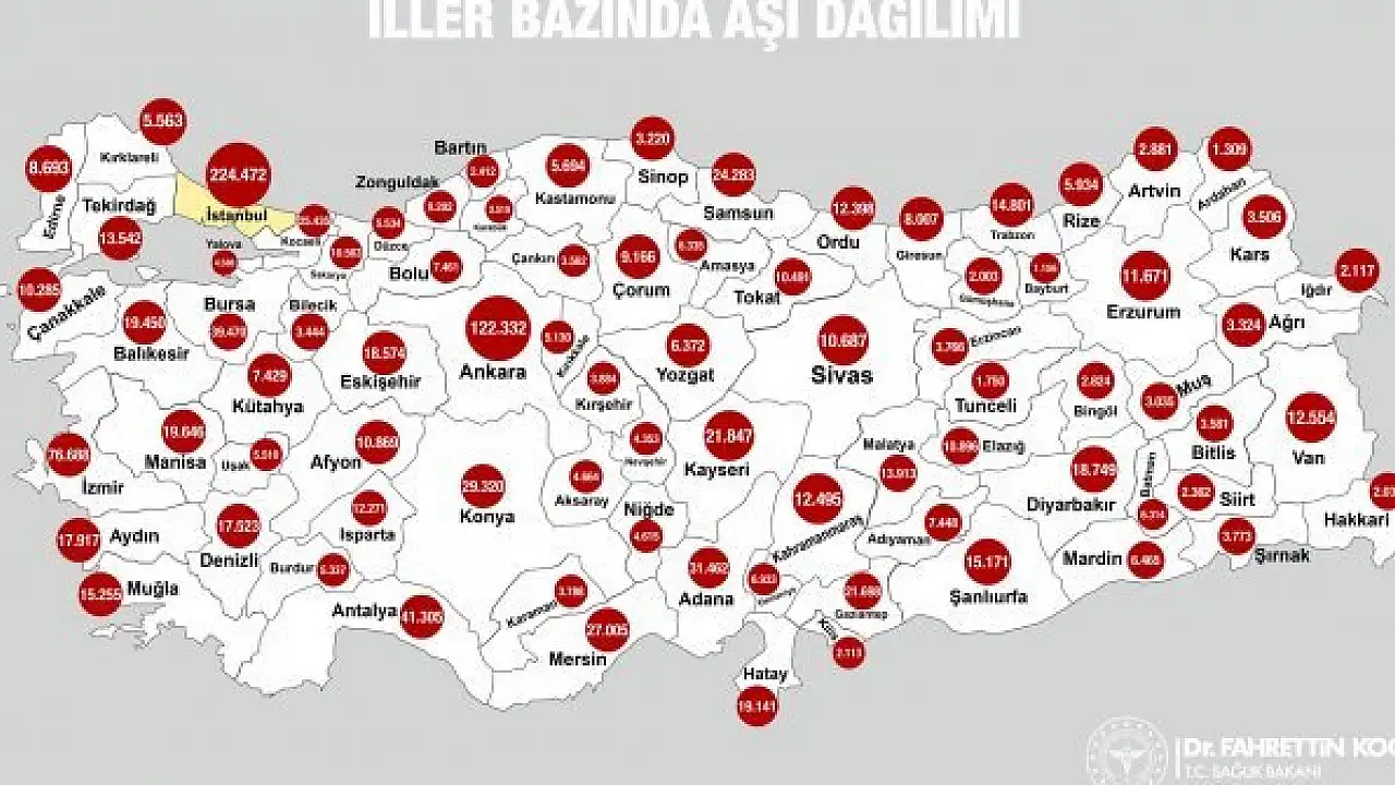 İllerde yapılan aşıları şehir şehir açıklayan Bakan Koca'nın açıklamasına göre, aşı sayıları şöyle;