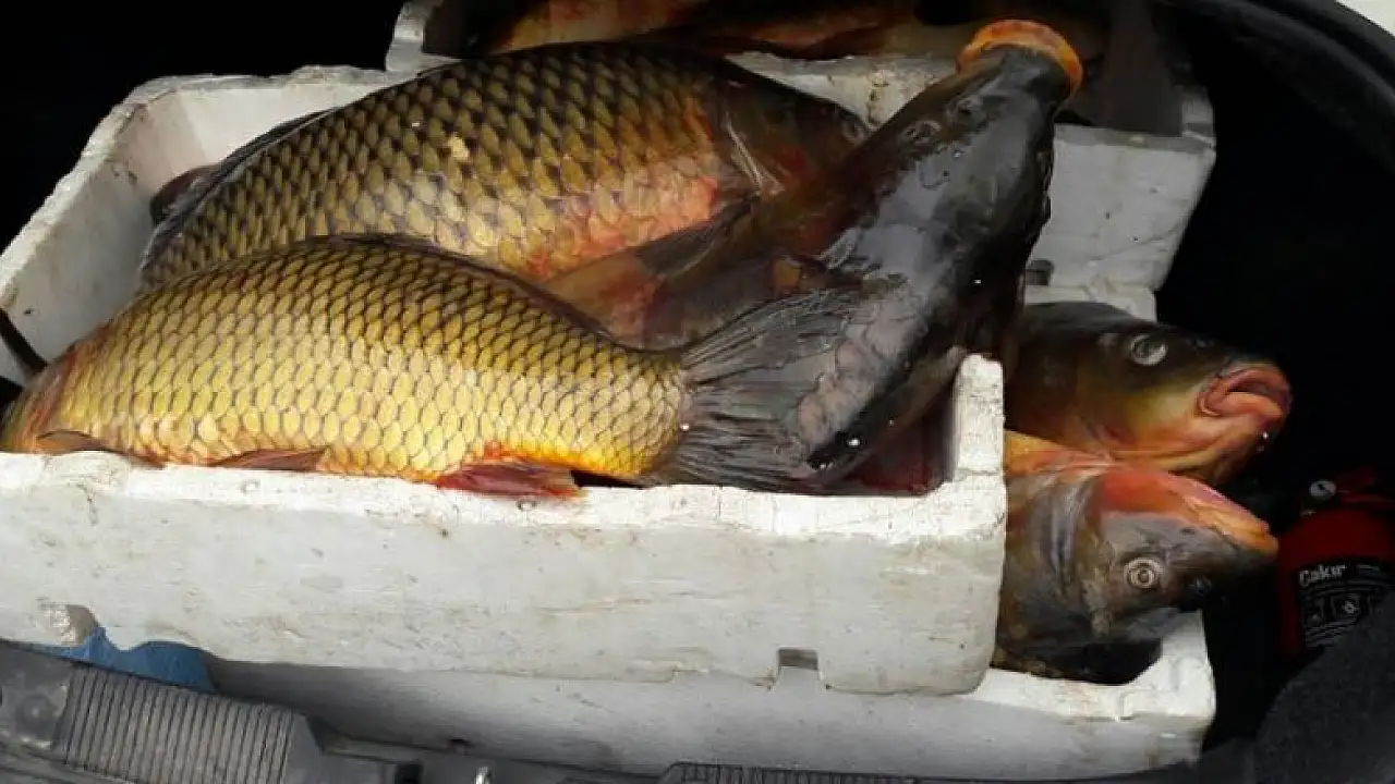 Konya'da bir minibüste yapılan denetimde, devam eden su ürünleri avlanma yasağı nedeniyle satışı yasak olan çok sayıda sazan ele geçirildi.