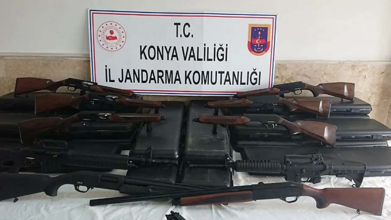 Konya'da jandarma ekiplerince, bir iş yerinde 64 adet kaçak üretilmiş av tüfeği ele geçirildi.