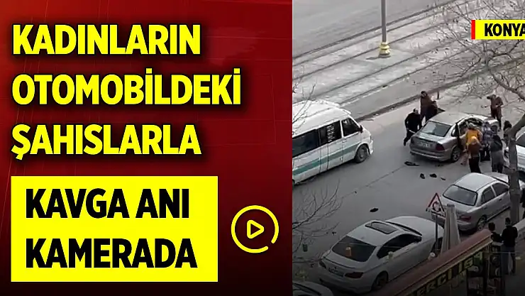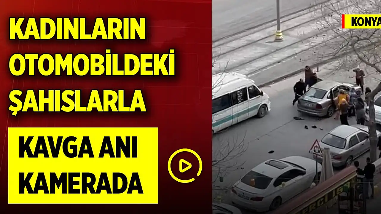 Konya'da kadınların otomobildeki şahıslarla kavga anı kamerada