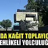 Ulaşbaba Caddesi'nden İstanbul Caddesi istikametine giden kağıt toplayıcısının üç tekerlekli motosikletle yaptığı tehlikeli yolculuk, Anadolu Ajansı tarafından görüntülendi.
