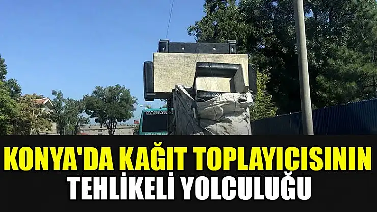 Konya'nın Selçuklu ilçesinde, kağıt toplayıcısının, kağıtlarını koyduğu çuvalın üstüne yüklediği koltuk takımıyla yaptığı yolculuk görenleri şaşkına çevirdi.
