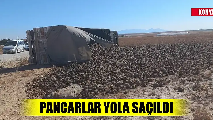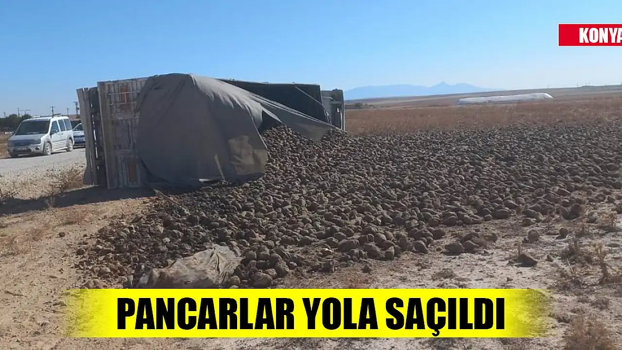 Konya'da kamyon devrildi, pancarlar yola saçıldı