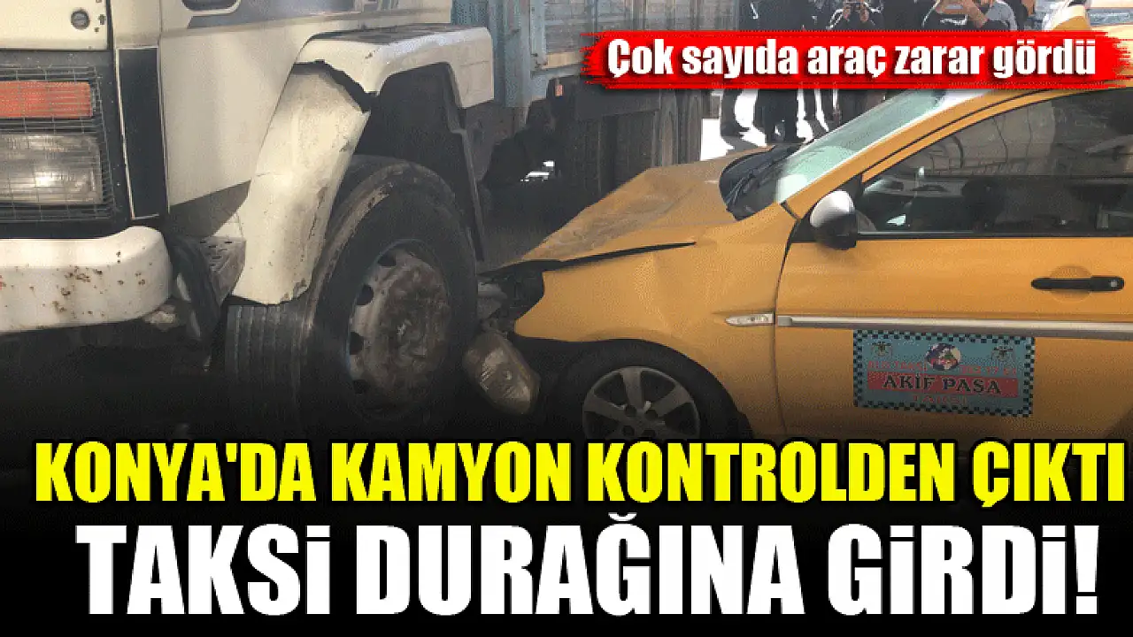 Konya'da kamyon kontrolden çıktı, taksi durağına girdi! Çok sayıda araç zarar gördü