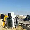 Konya'da kum yüklü kamyonun refüje devrilmesi sonucu 1 kişi yaralandı.