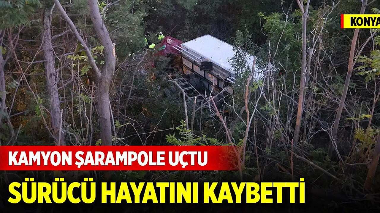Konya'da kontrolden çıkarak şarampole uçan kamyonun sürücüsü hayatını kaybetti.