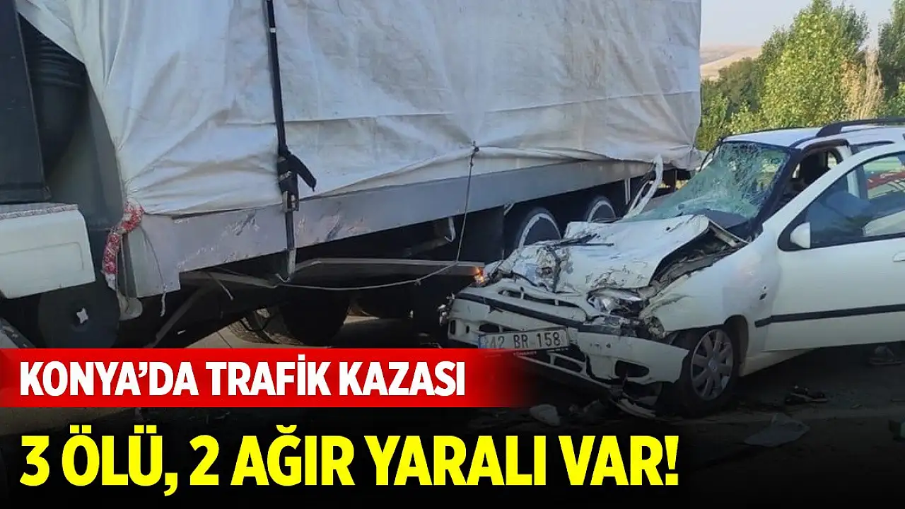 Konya'da kamyona çarpan otomobildeki 3 kişi hayatını kaybetti, 2 kişi ağır yaralandı.