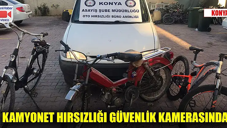 Konya'da bir kamyonetin çalınma ihbarı üzerine harekete geçen polis ekipleri güvenlik kameralarını inceleyerek şüpheliyi tespit etti. Güvenlik kamerası görüntülerinde, hırsızın birkaç gün önce çaldığı bisikletle olay yerine gelerek kamyoneti çalıştırdığı ve bisikletini kamyonetin arkasına yükleyerek olay yerinden kaçtığı görülüyor.