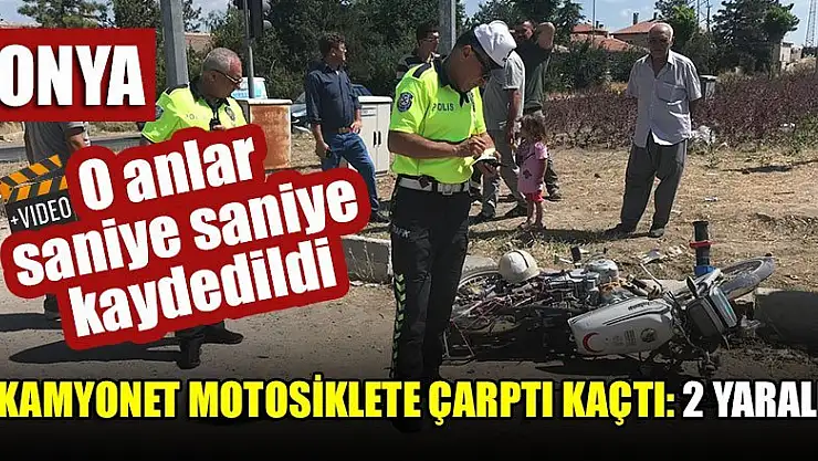 Konya'nın Ereğli ilçesinde kamyonetin motosikletliye çarpması sonucu meydana gelen trafik kazasında 2 kişi yaralandı. Motosiklete çarpan kamyonet, olay yerinden kaçarken bir iş yerinin güvenlik kamerasına yakalandı.