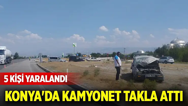 Konya'da kontrolden çıkan kamyonetin takla atması sonucu meydana gelen kazada 5 kişi yaralandı.