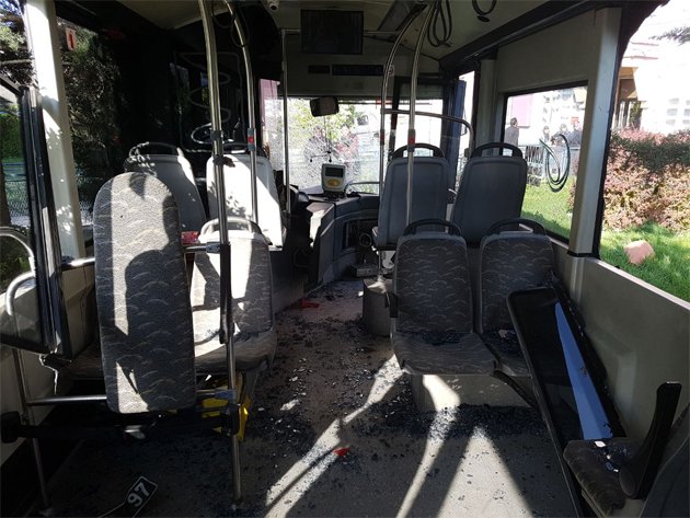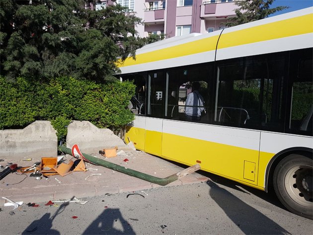 Hızını alamayan belediye otobüsü, sürücüsünün direksiyon hakimiyetini kaybetmesi sonucu bir sitenin duvarını yıkıp, bahçeye girdi.