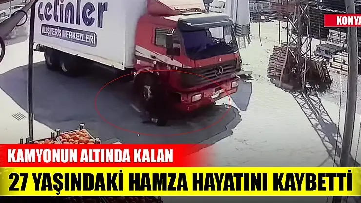 Konya'da, halde çalışan Hamza Ergin (27), kapısına tutunup gitmek istediği kamyonun altında kalıp, yaşamını yitirdi.