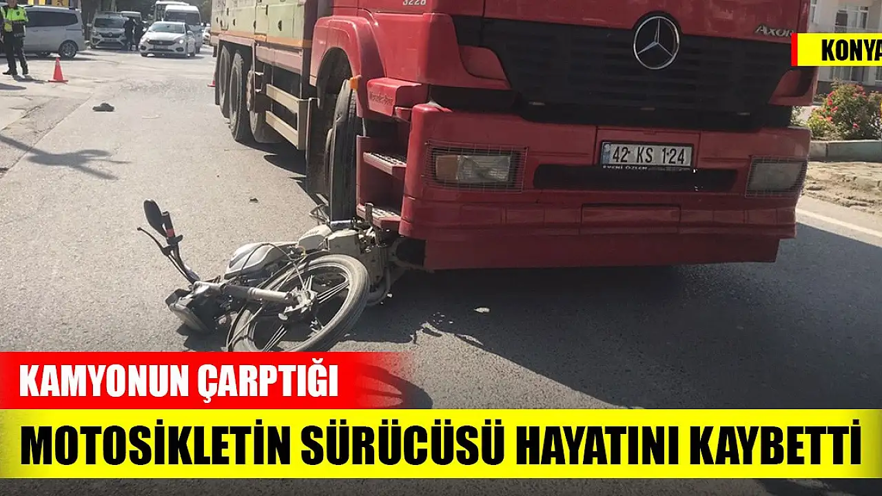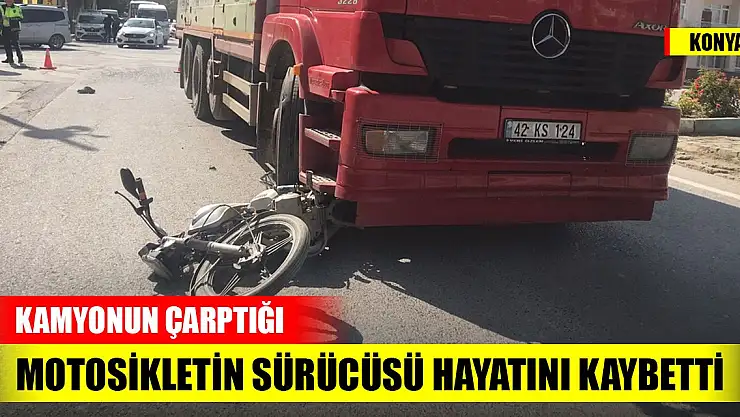 Konya'da İstasyon Mahallesi'nde kamyonun çarptığı motosikletin sürücüsü hayatını kaybetti.