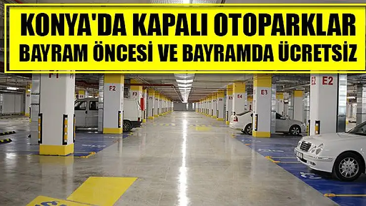 Konya Büyükşehir Belediyesi, Kurban Bayramı dolayısıyla, bünyesinde hizmet veren kapalı otoparkları, 29 Temmuz Çarşamba gününden itibaren bayram sonuna kadar ücretsiz olarak Konyalı vatandaşların hizmetine sunacak.