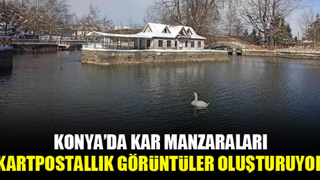 Konya'da kar manzaraları kartpostallık görüntüler oluşturuyor