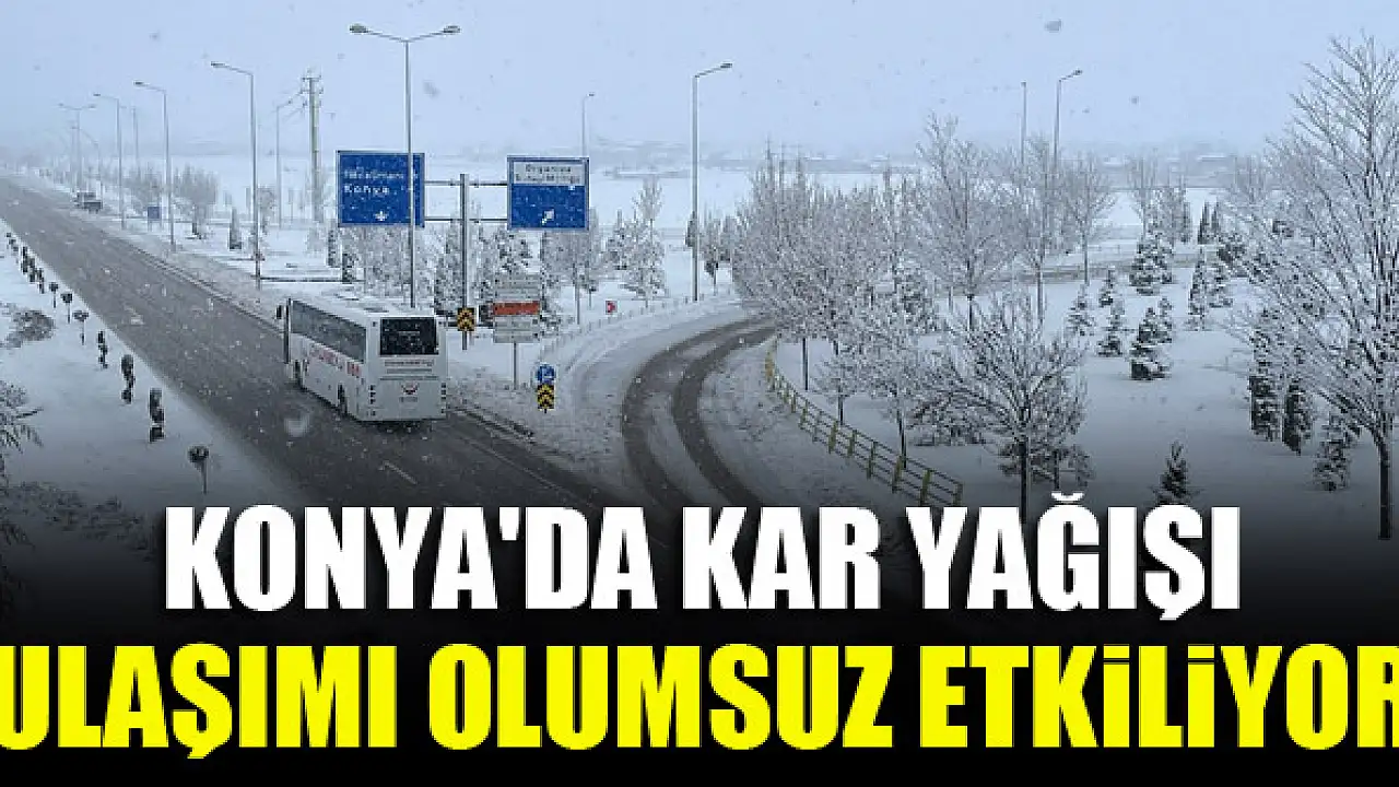 Konya'da etkili olan kar yağışı, ulaşımı olumsuz etkiliyor.
