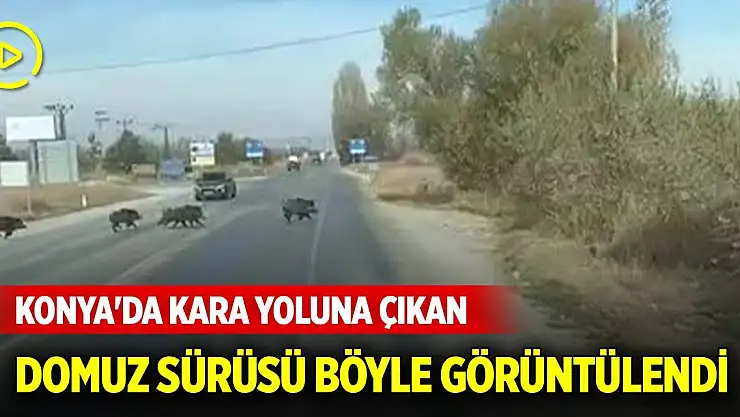 Konya'da kara yoluna çıkan yaban domuzu sürüsü cep telefonuyla görüntülendi.