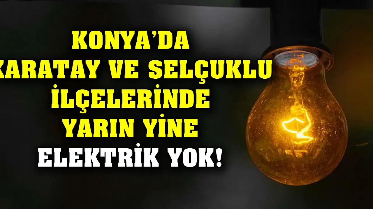 Konya'da yarın Karatay ve Selçuklu İlçelerinin bazı mahallelerinde elektrik kesintisi yaşanacak. Peki, hangi mahallelerde elektrik olmayacak? İşte detaylar…