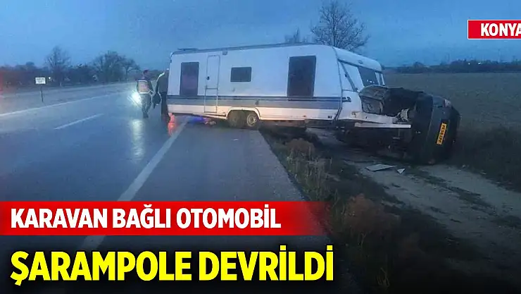 Konya'da karavan bağlı otomobil şarampole devrildi