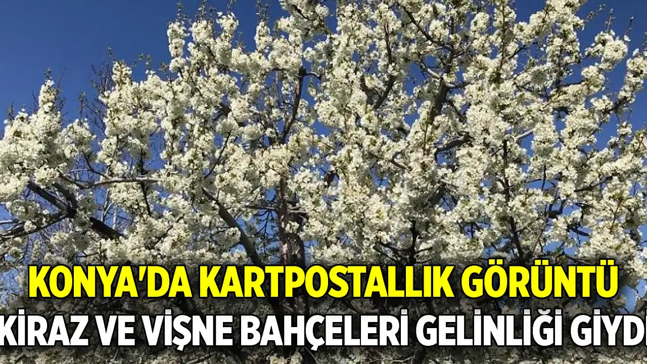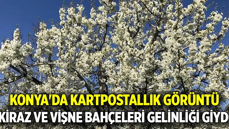 Konya'da kartpostallık görüntü...Kiraz ve vişne bahçeleri gelinliği giydi