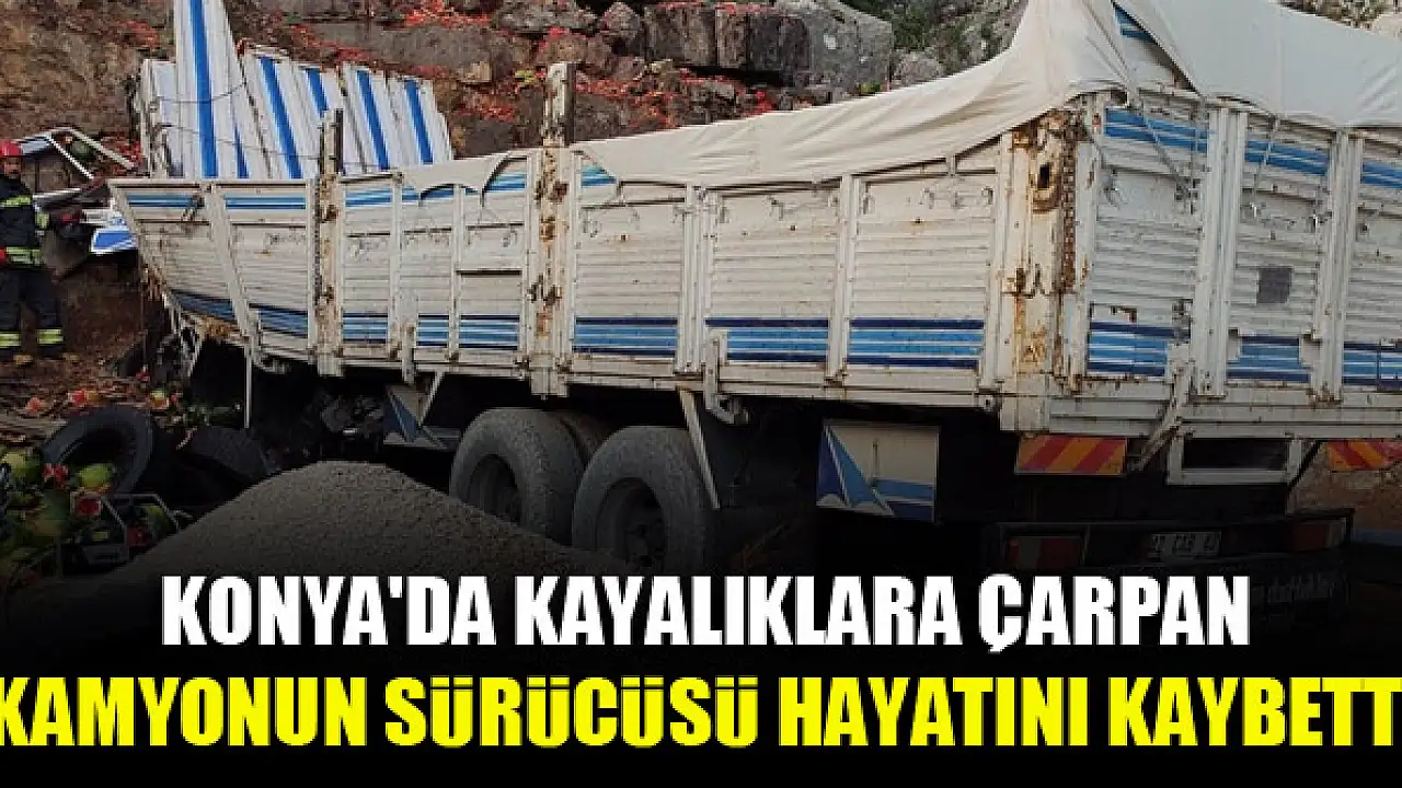 Konya'da kayalıklara çarpan kamyonun sürücüsü hayatını kaybetti