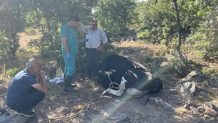 Teknolojik imkanlardan da faydalanan ekipler, arama faaliyetlerine dron desteğiyle devam etti. Yaklaşık 2 saat süren koordineli çalışma sonucunda, kayıp inek kırsal alanda doğum sonrası felç geçirmiş ve yürüyemez halde bulundu.