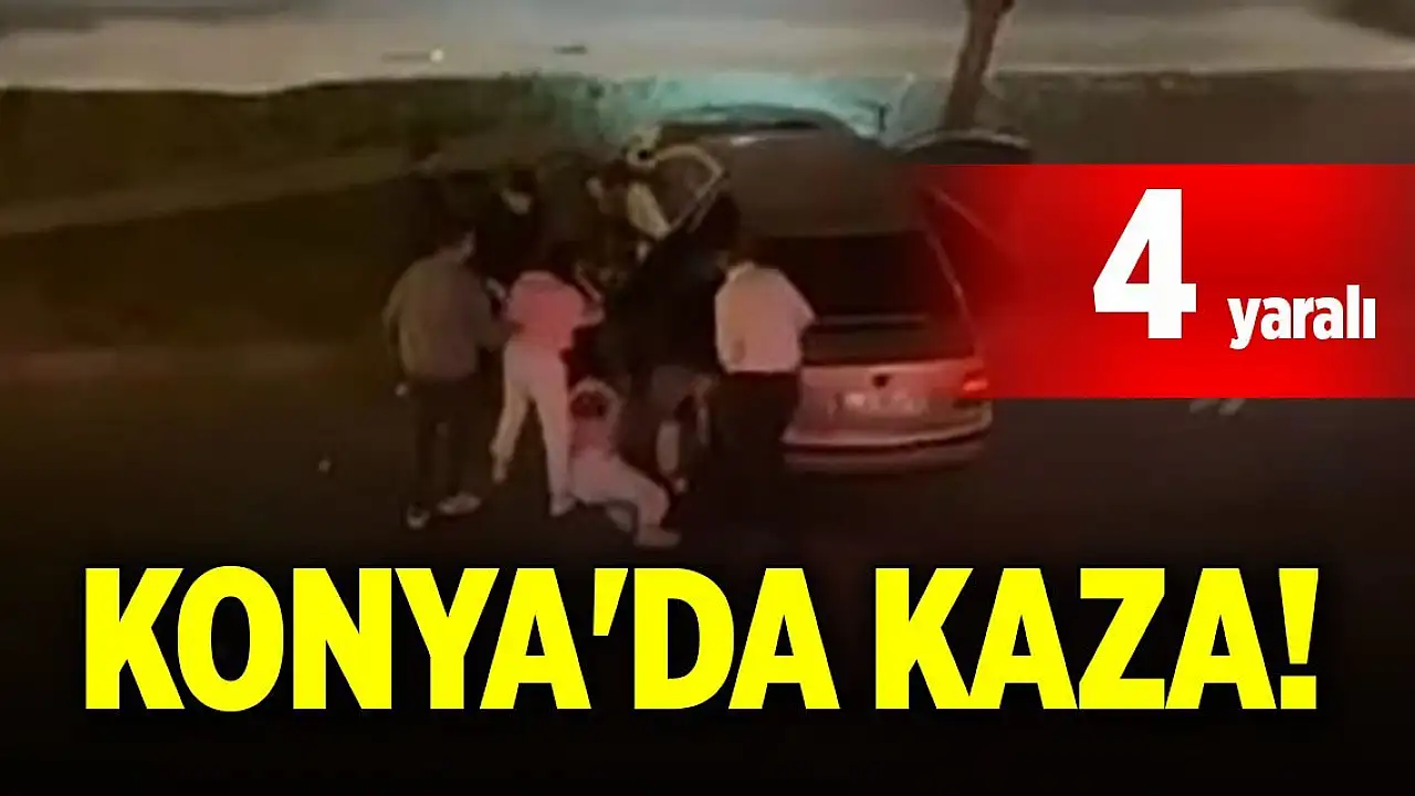 Konya'da kontrolden çıkan otomobilin direğe çarpması sonucu 4 kişi yaralanırken, kaza sonrası yaşanan panik anları cep telefonu kamerasına yansıdı.