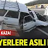 Kazada ön sağ lastiği kopan ve arka tekerlekleri bariyerlerde asılı kalan otomobilin sürücüsü ile araçta bulunan eşi Zehra K. ve 2 yaşındaki kız çocuğu B.K. yaralandı.