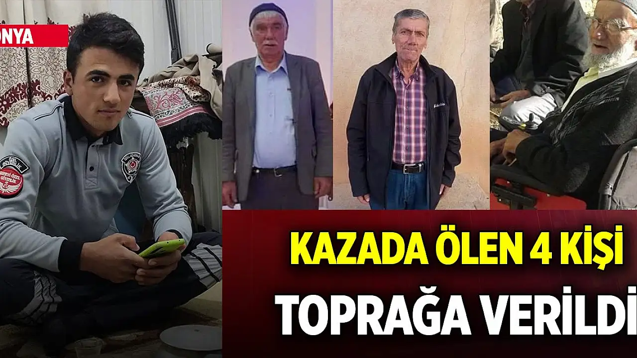 Konya'nın Derbent ilçesinde iki otomobilin çarpışması sonucu meydana gelen kazada ölen Mustafa Göçer (94), oğulları aynı taşıyan Mustafa Göçer (62) ve Mehmet Göçer (59) ile kaldırıldığı hastanede yaşamını yitiren diğer aracın sürücüsü Yakup Genç (22) bugün kılınan namazın ardından mahallelerinde toprağa verildi. Yaralı sürücü Ahmet Göçer'in (32) tedavisinin de devam ettiği öğrenildi. Kaza anı ise güvenlik kamera kayıtlarına yansıdı.
