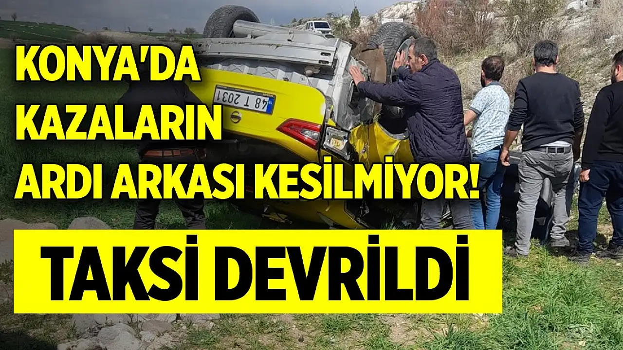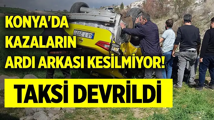 Konya'da kazaların ardı arkası kesilmiyor! Taksi devrildi