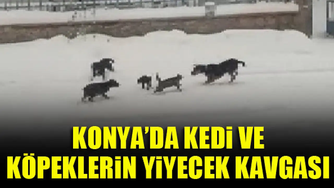 Konya'nın Beyşehir ilçesinde kedi ve köpeklerin yiyecek kavgası cep telefonu kamerası ile görüntülendi.