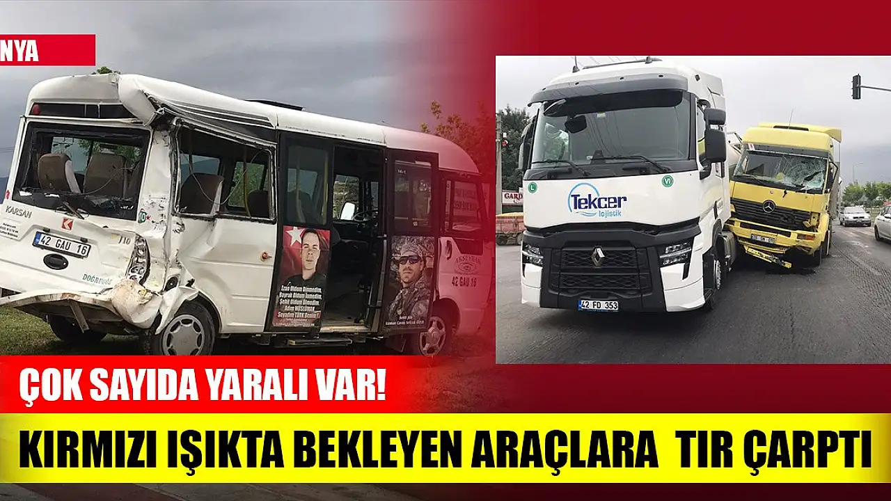 Konya'nın Akşehir ilçesinde, tırın kırmızı ışıkta bekleyen araçlara çarpması sonucu yaralanan 12 kişi, hastaneye kaldırıldı.