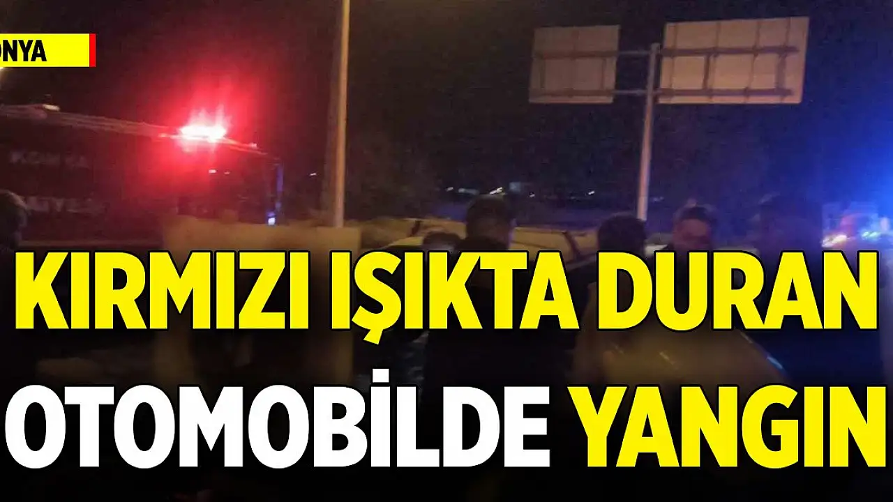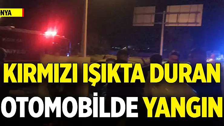 Konya'da kırmızı ışıkta duran otomobilde yangın