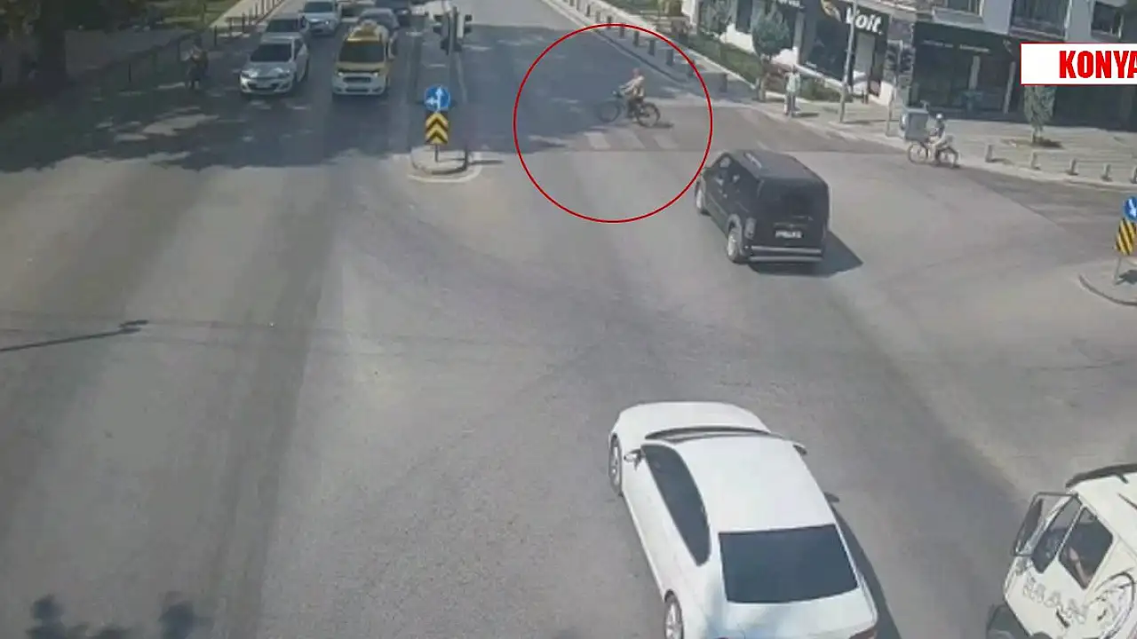 Konya'da kırmızı ışıkta geçen bisiklet sürücüsü ağır yaralandı